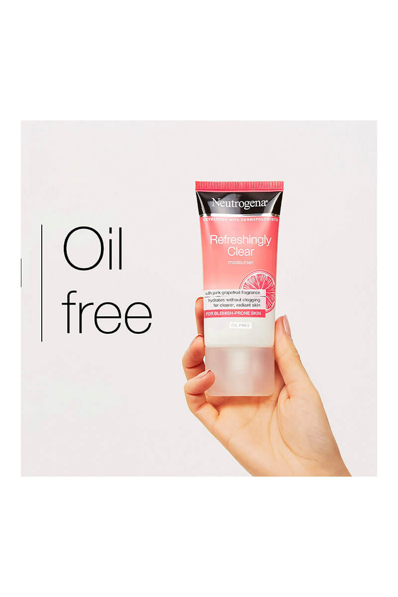 This NEUTROGENA oil-free moisturizer hydrates your skin. NEUTROGENA Refreshingly Clear Moisturiser brings your skin the pink grapefruit fragrance.