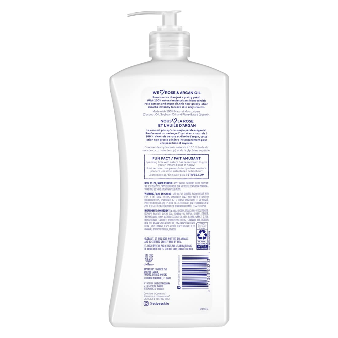 - ST. IVES SMOOTHING BODY LOTION made with rose and argan oil, this moisturizing lotion delivers 100% of the daily hydration your skin needs to glow